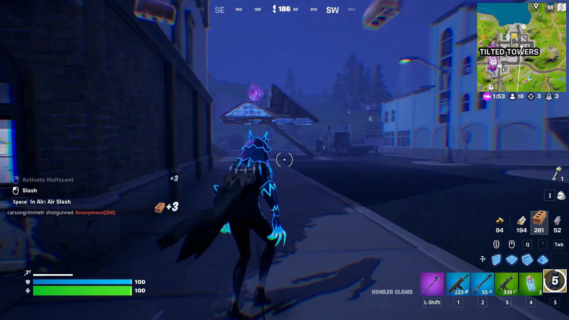 Wolfscent is the most powerful aspect of becoming a Werewolf in Fortnite and is probably why Howler Claws is a Mythic weapon. To use Wolfscent, switch to Howler Claws and use your secondary attack button. Your character will howl for 1-2 seconds; then you’ll be able to sense enemies through walls.