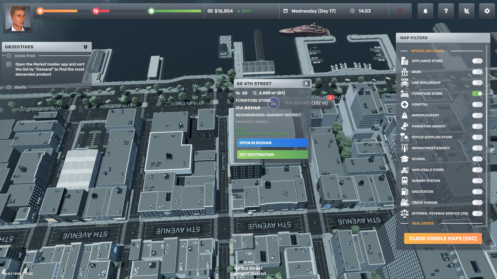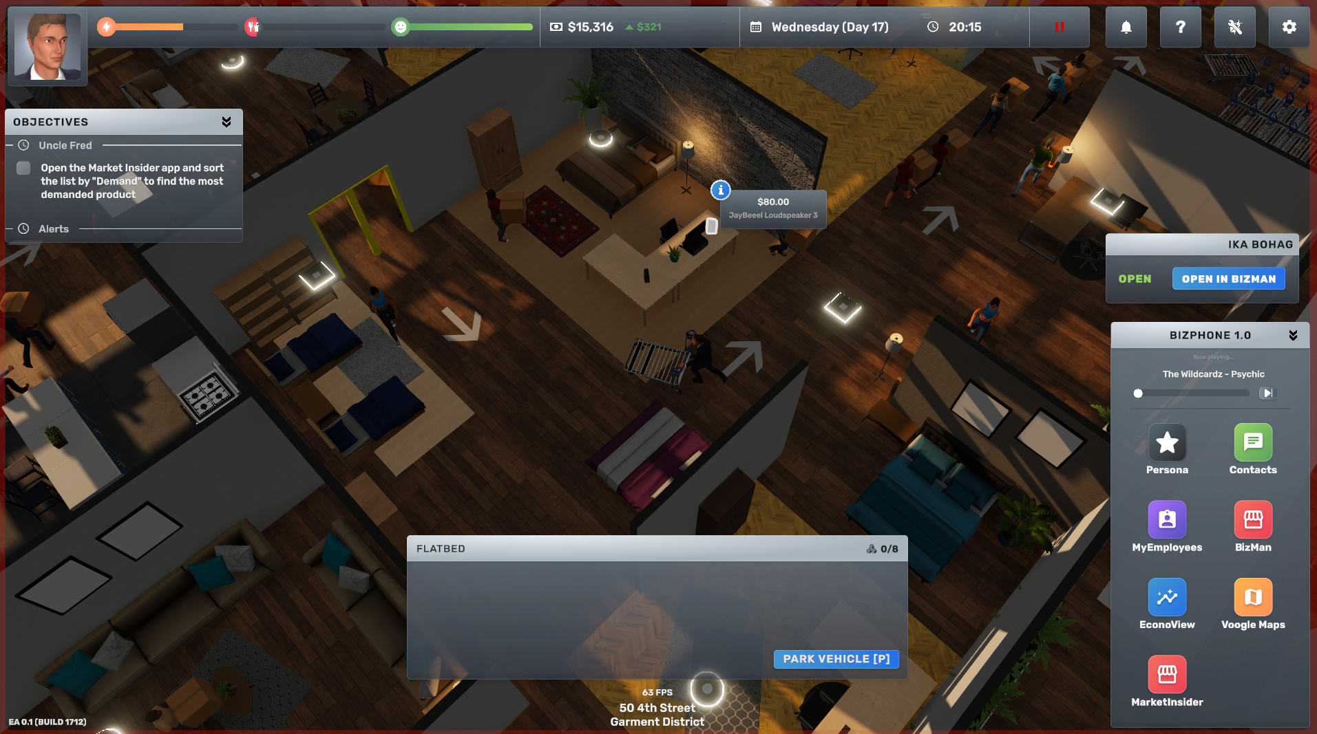 To buy a speaker, pull up Voogle Maps and filter by Furniture Stores. You can find ka Bohag, the game’s spinoff of Ikea, on 50 4th Street. Head over to the location in your car, and walk inside. You’ll find the JayBeeel Loudspeaker 3 for $80 sitting atop one of the office desks in the mock bedroom setups.