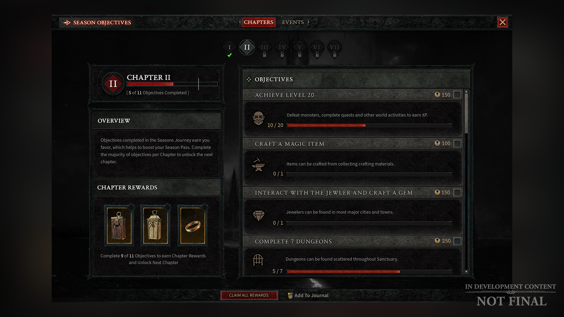 Each season in Diablo IV will offer a Season Pass with two tracks, a free tier, and a premium tier. Players can earn a variety of free rewards simply by playing the game. Those who want to purchase the Premium Pass can unlock the ability to get Premium rewards consisting of cosmetics and Premium Currency.