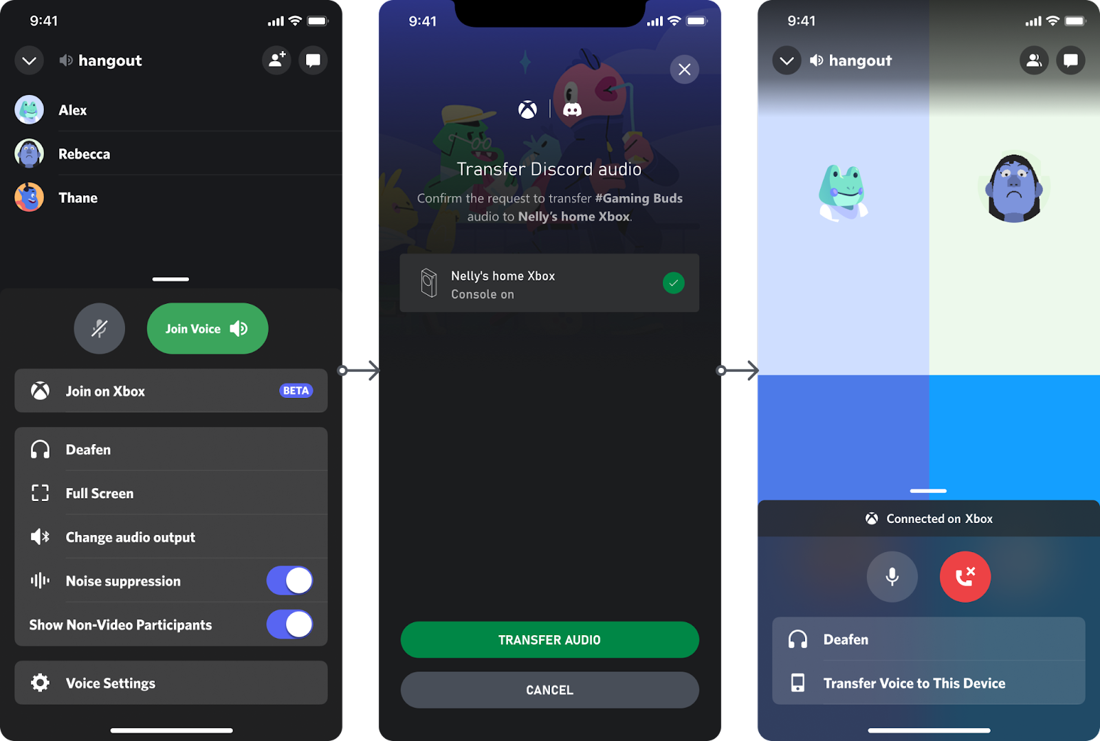 Hop into a Discord Voice channel on the mobile or desktop client like normal. You’ll then see an option to transfer the call to your Xbox. Tap on that, and you’ll see the Xbox mobile app open up and notify you that you can connect your Xbox to the Discord Voice channel.
