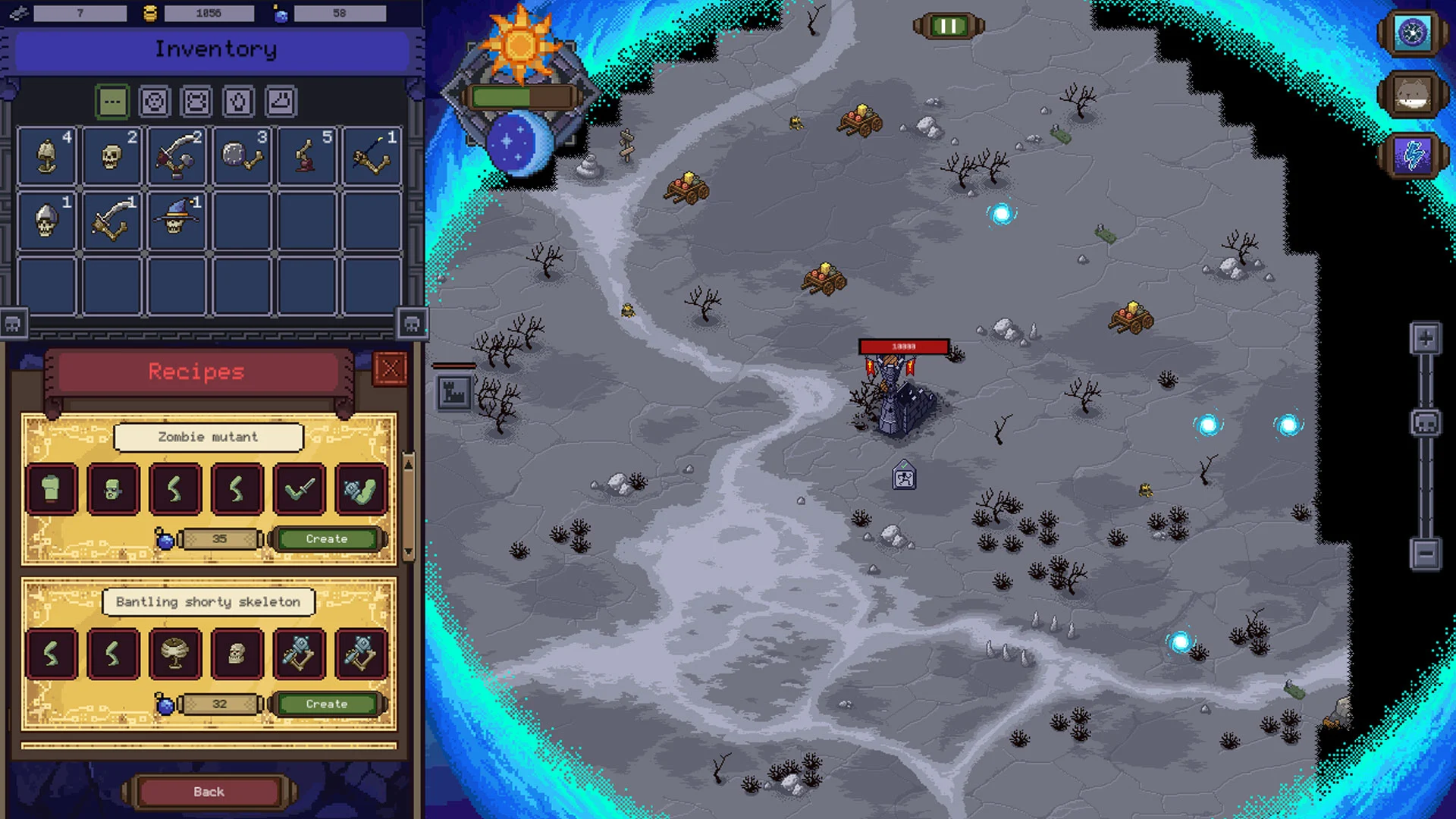 If you’ve unlocked it, you can also send out your Cat to collect resources and body parts for you. There are a lot of items scattered around the map at the start of each game, and you get more by killing the hordes of attacking enemies. So remember to pick them up with your units or your Cat and experiment with them to unlock hidden unit recipes.