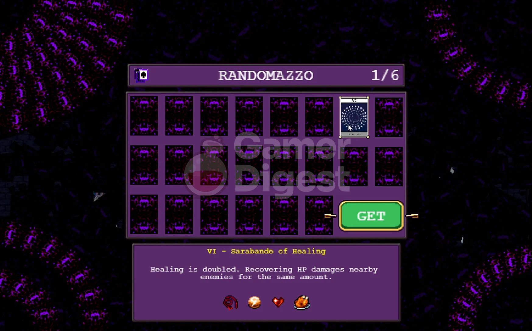 Randomazzo enables the unlocking and activation of Arcanas. Arcanas are cards that modify different game mechanics and are unlocked by meeting specific requirements.