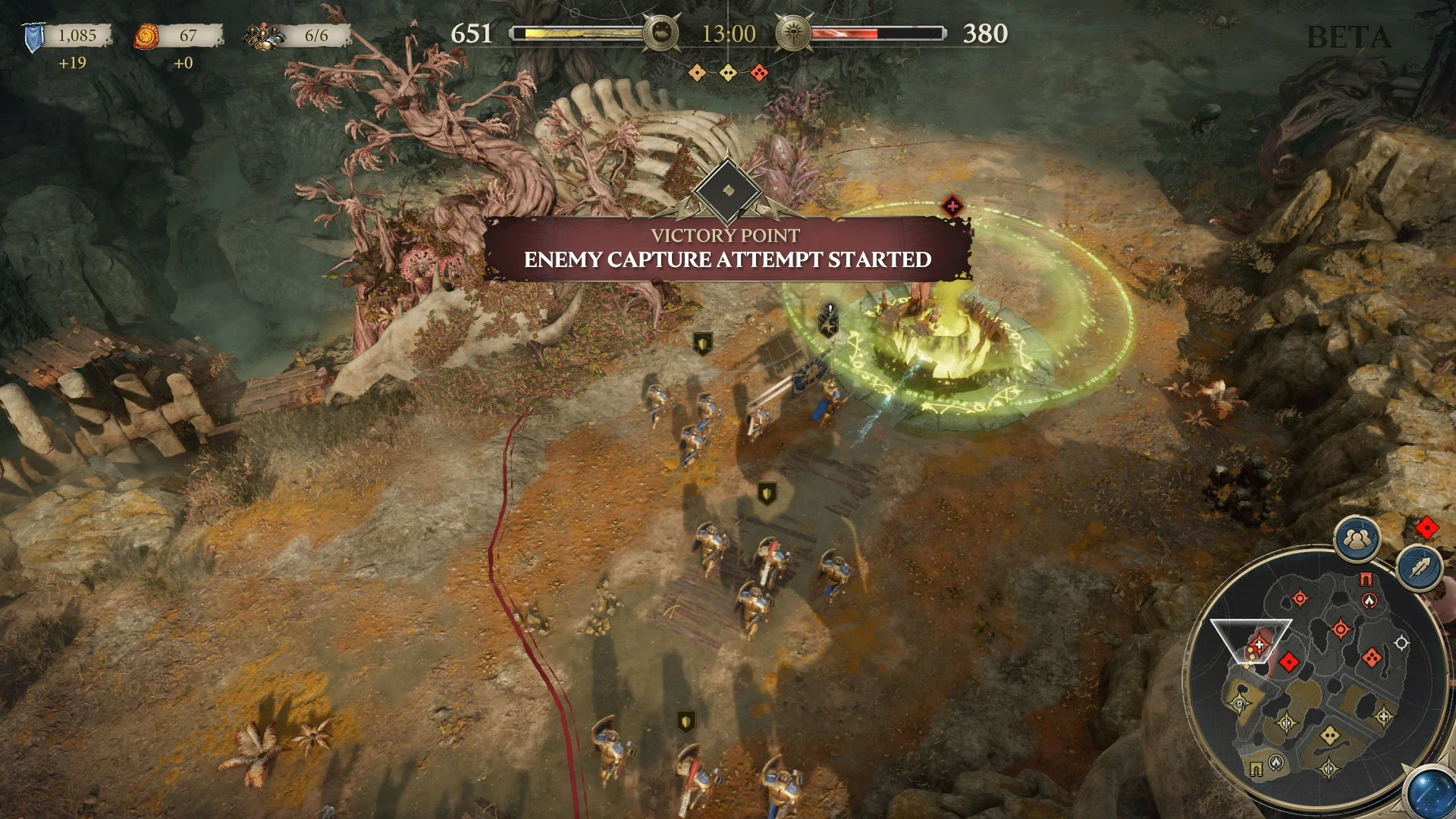 In Realms of Ruin, players can cap three essential territories to maintain their point count. Whoever owns fewer of these points will slowly start to tick down on points until they have 0 and lose the match. I can’t tell you how many players didn’t understand this mechanic (including myself in the first match) and just lost because I had more of these points held.