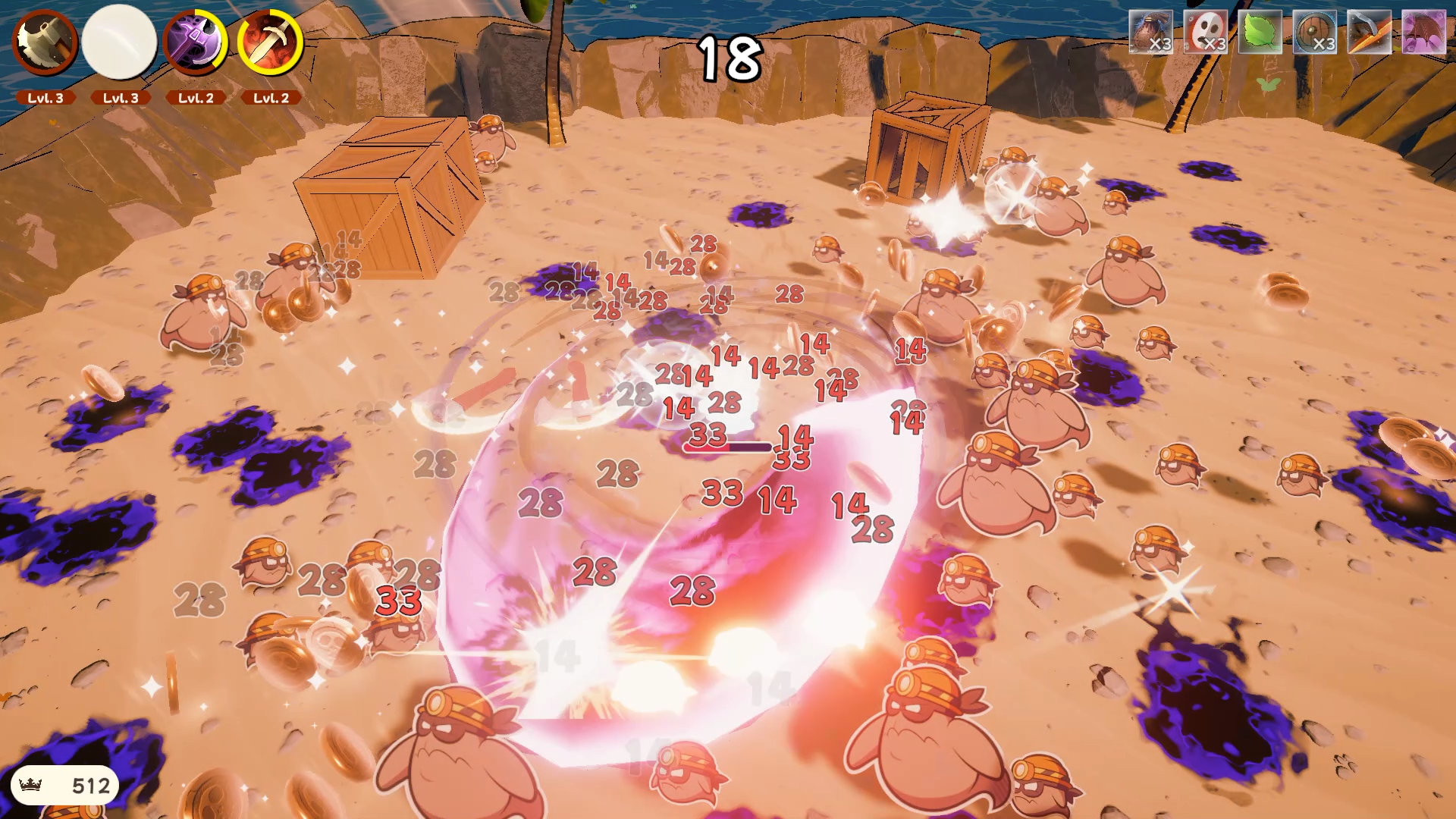 The gameplay is similar to that of other games in this genre, combining Brotato with a level progression system from other roguelike games such as Slay the Spire. Players choose their path from a multi-pronged level tree, which is mixed with basic stages, campfires that provide opportunities to purchase trinkets and weapons, boss stages, and the final boss stage.